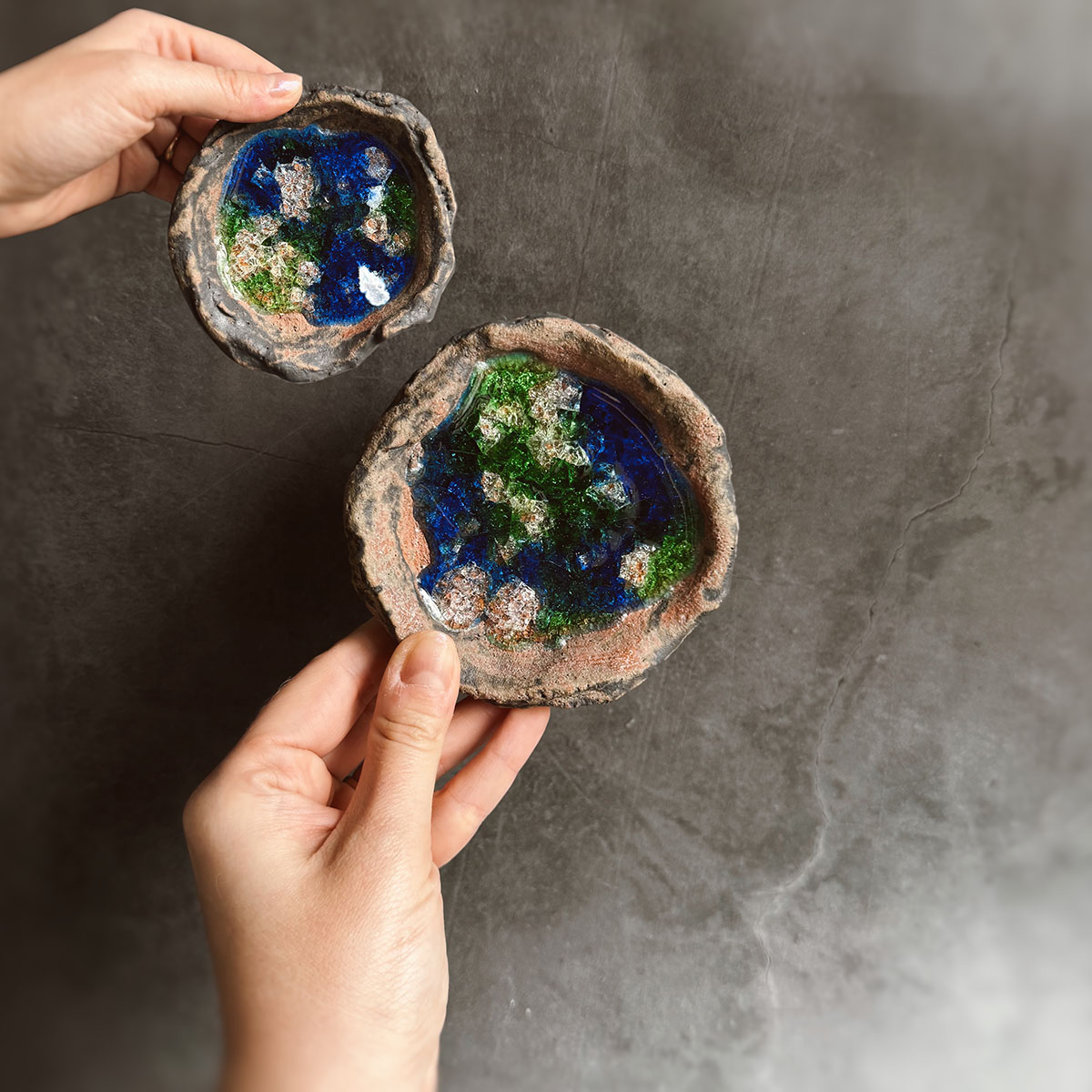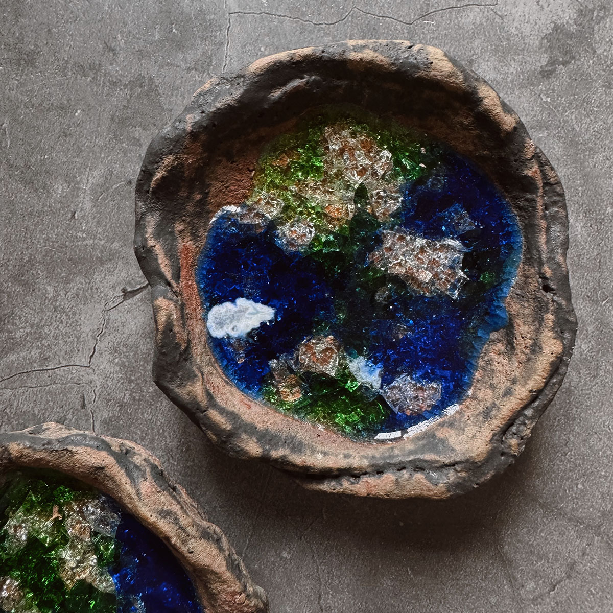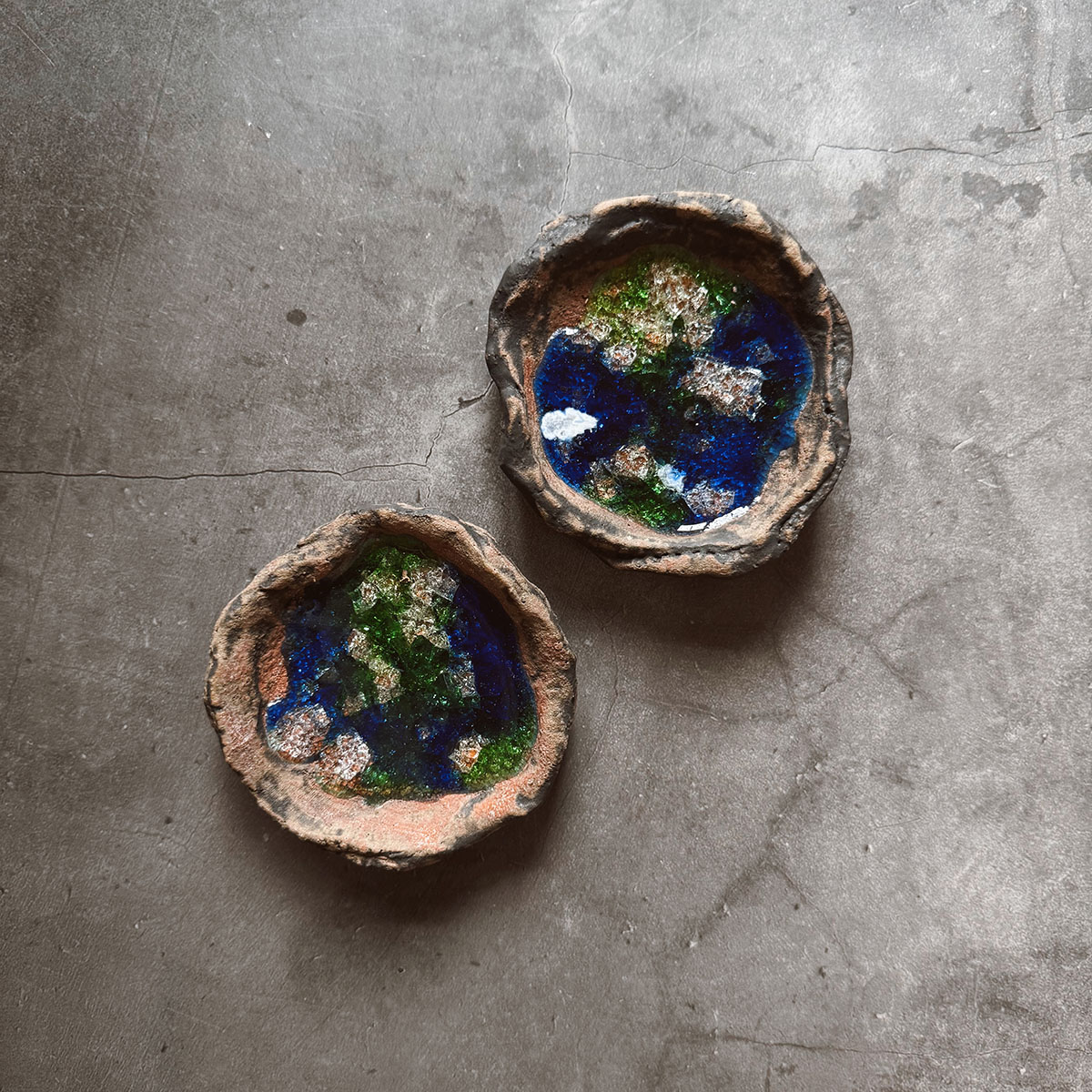 Atalia | El Yapımı Seramik Dekoratif Camlı 2’li Kase Tabak Takımı