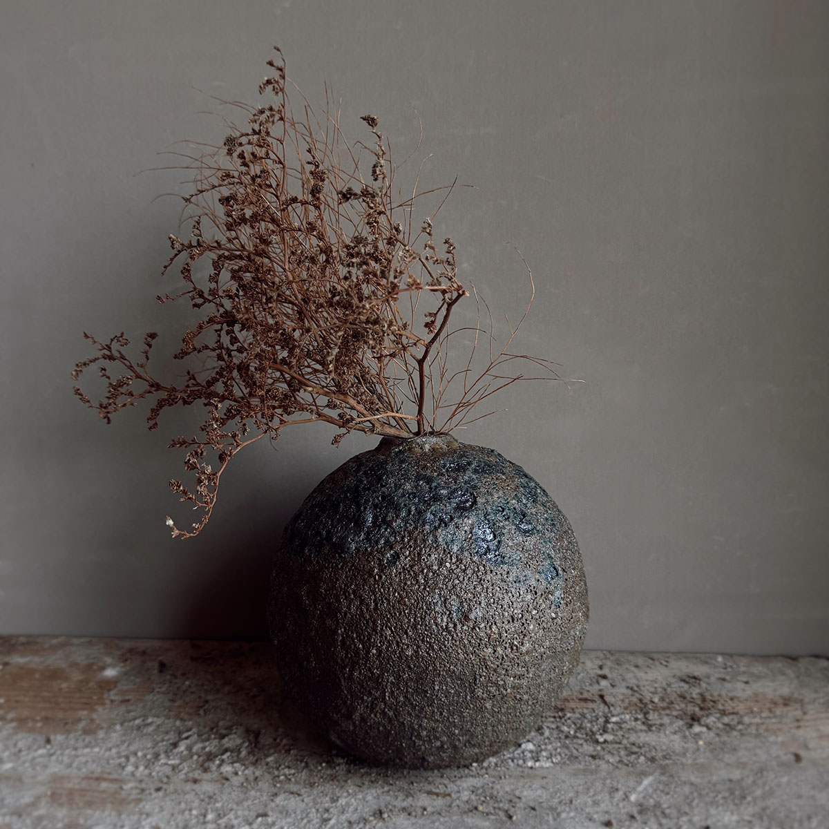 Stone | El Yapımı Seramik Dokulu Wabi Sabi Dekoratif Küre Vazo