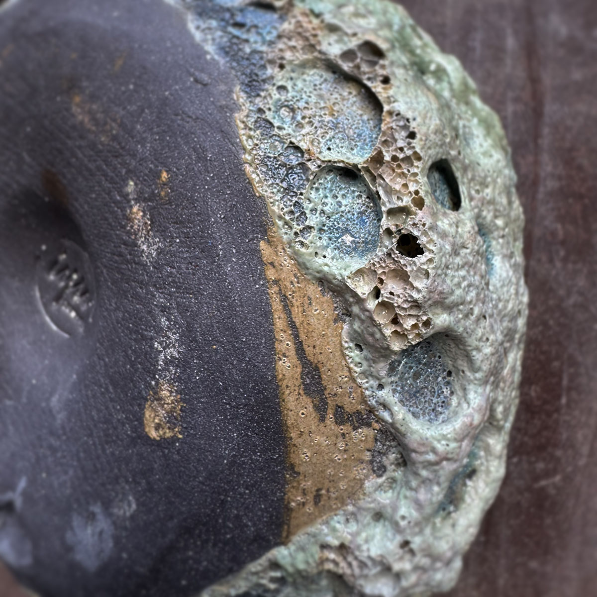 - Dayanıklı, siyah stoneware seramik çamuru ile elde şekillendirilip, kendi ürettiğim dokulu sırlarla renklendirilmiştir.